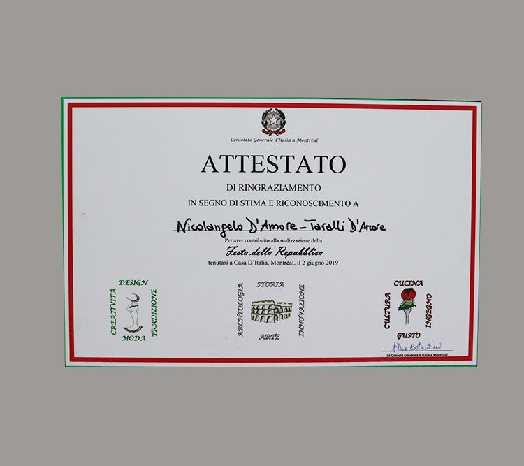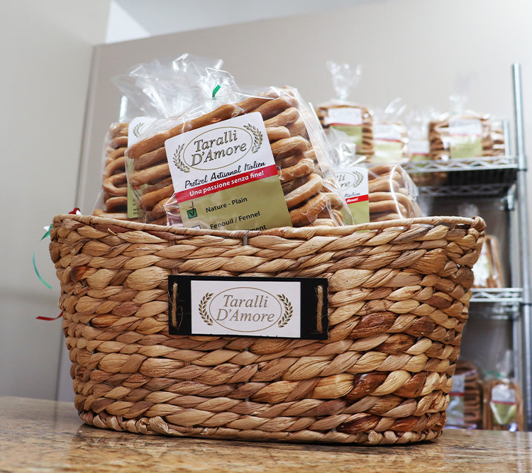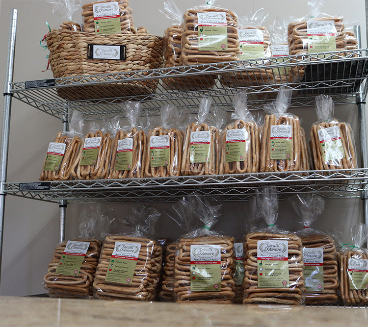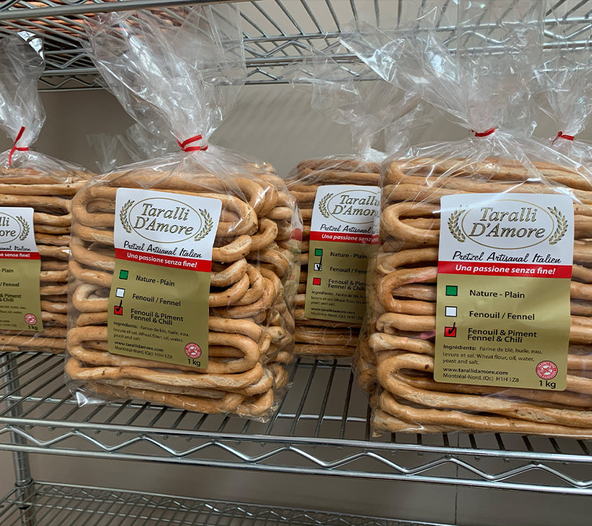 Taralli D'Amore offre un produit simple mais délicieux. Tout est parti d'une vieille recette de Mamma Maria. Taralli D’Amore est né d’une recette originale et d’une production artisanale, tout comme la tradition. La famille D’Amore offre un produit de qualité fait avec amour et passion. Nous tenons à remercier la communauté de Montréal qui continue d'apprécier ce produit artisanal. Nos clients peuvent choisir parmi 3 saveurs différentes: fenouil, naturel et épicé. Chaque saveur est disponible en 2 formats d'emballage: 310 grammes et 1 kilogramme. Essayez-les vous-même! Vous pouvez trouver les produits Taralli D’Amore dans de nombreux magasins populaires.